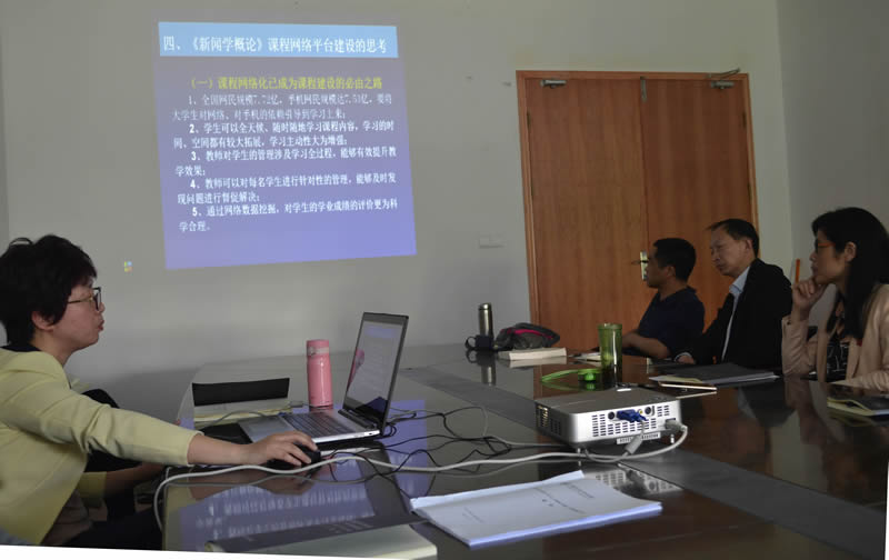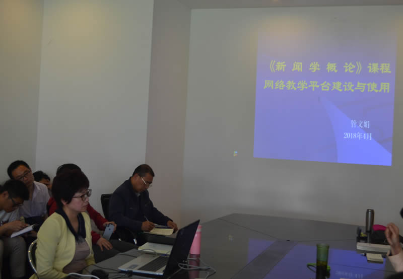 4月19日文学与传媒学院在三楼会议室举办了教学沙龙活动,管文娟老师详细讲解《新闻学概论》课程网络教学平台架构与使用,《新闻学概论》课程是文学院广播电视学专业的专业基础课程,2015年该课程被评为省级精品资源共享课程,2016年开始进行网络课程平台建设,广电16、广电17以及重修、双学位共一百余名学生已利用该网络平台进行了课程学习,目前该课程网络点击量超过4万4千次。