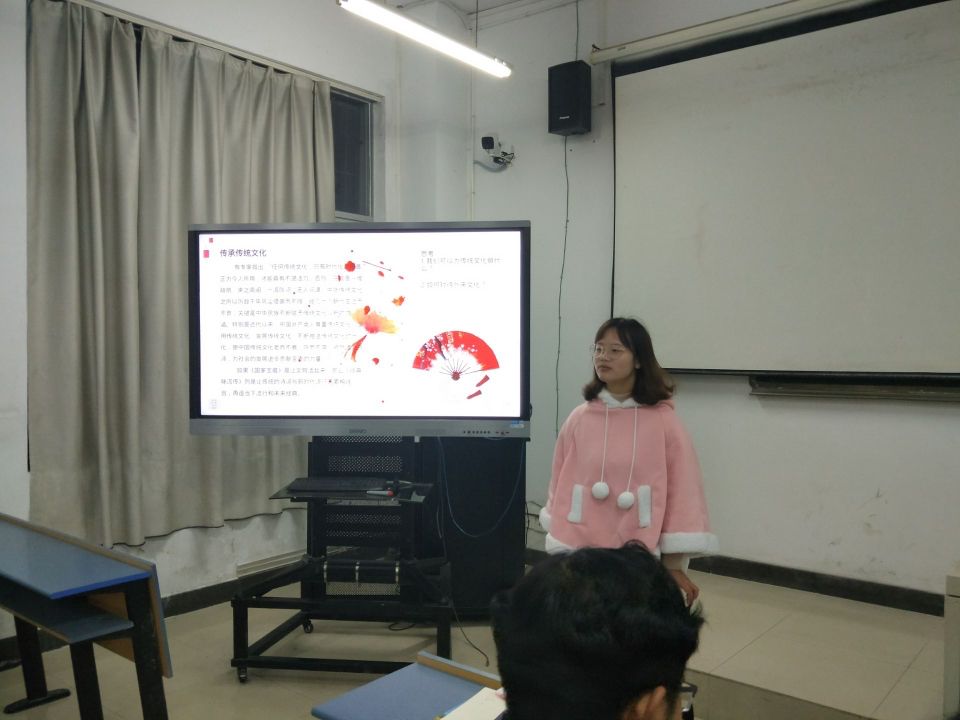 本次活动各班以不同形式弘扬中华传统文化,抵制外来不良文化渗透。广电1811班以PPT的形式向同学们展示中华文化博大精深的内涵及精彩纷呈的表现形式。期间,同学们积极参与互动,猜灯谜、讲中国故事,还一起观看《舌尖上的中国》。主持人明萌说:“我们大学生要为传统文化创新提出新点子,为传统文化回归大众做贡献,对于外来文化我们要理性对待,拒绝崇洋媚外。”汉语言1812班的同学们观看古风国漫视频,通过具有中国风的动漫了解中华传统文化中的特色与情感,共同感受中华五千年的文明瑰宝。