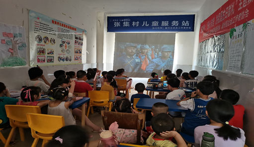 图为孩子们正在认真观看《七七事变》电影。胡玉娇摄