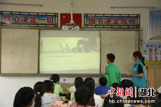 中新网湖北新闻7月10日电 (刘珅鸣 胡丹阳)7月9日,湖北文理学院“紫薇花·阳光使者”志愿服务队到襄阳市冷集镇小学,与该校五年级同学们开展“画笔描绘美好人生,色彩绘就壮丽人生”的主题美术课,共同探索色彩的奥秘。