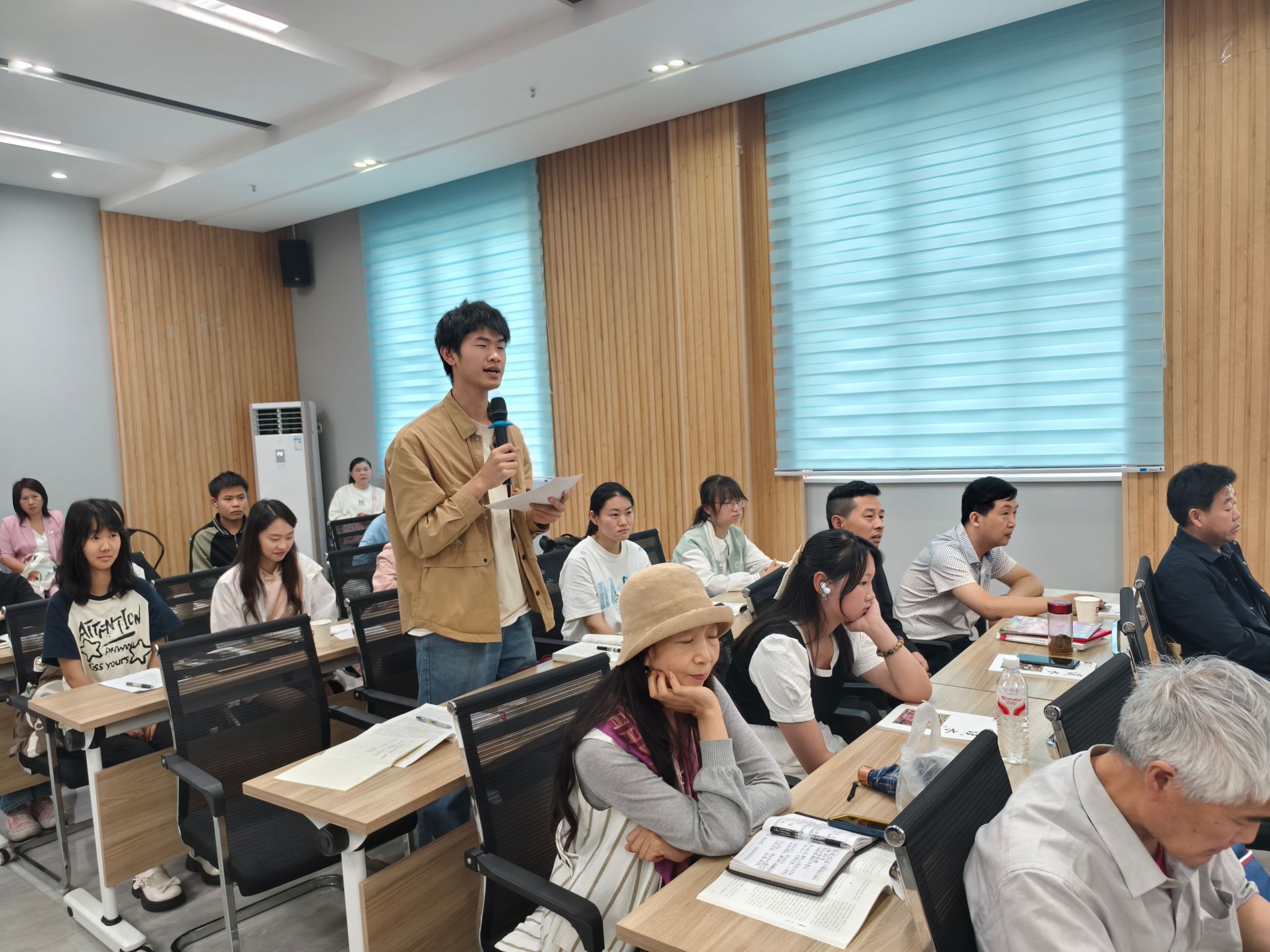 社员们细心聆听讲座,并虚心求教。草庐文学社创辅部部长张腾迪就“儿童文学作品在思想表达上与普通文学作品有区别,这一区别又如何呈现”向谢乐军请教。谢乐军认为,孩子的想象力与成人存在差异,在进行儿童文学创作时,作者应相信读者的理解能力,在儿童文学上汲取艺术创作中的“留白”手法。在创作中巧妙运用留白,不宜将作品内涵直接铺设在作品中,让孩子们发挥思考与想象的主观能动性。