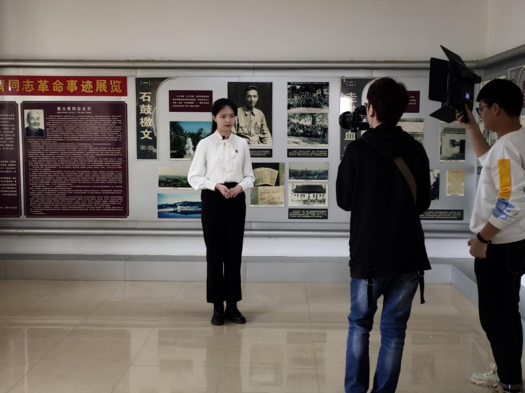 “1901年,老一辈无产阶级革命家黄火青同志,就诞生在我脚下的这片热土。”广播电视编导2019级学生冯玥正在录制宣讲视频,学习党史,讲述黄火青及火青村革命传统实践育人基地的故事。