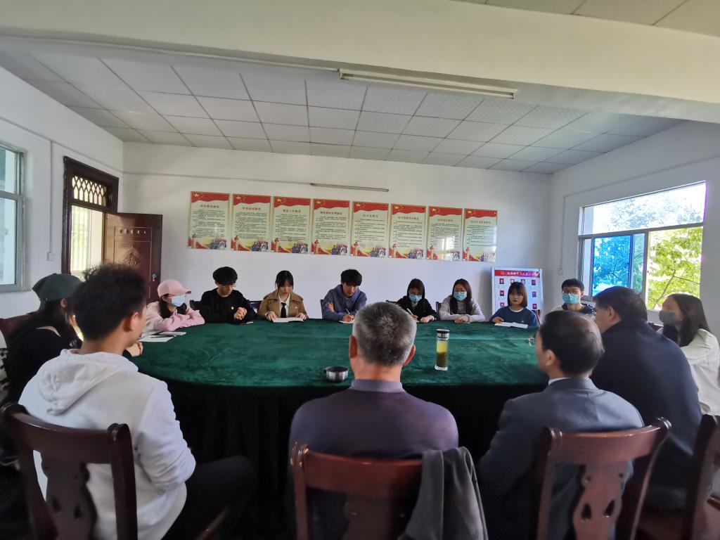 参观了纪念馆后,师生齐聚火青村会议室,交流党史学习心得。火青村党支部书记王泽群讲述了火青村的历史变革以及发展现状,让师生对火青村发展有了进一步了解。