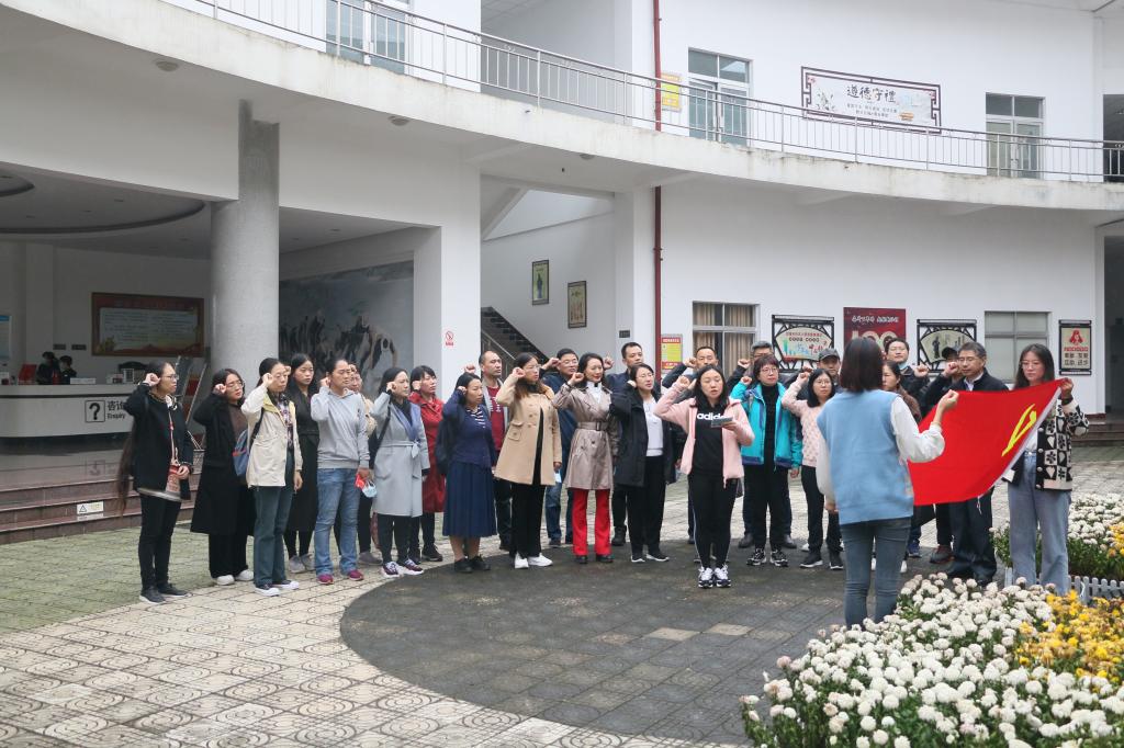 “我志愿加入中国共产党,拥护党的纲领,遵守党的章程......”襄阳革命烈士纪念馆门前,新闻系党支部书记尚炜带领全体教工党员重温入党誓词,回顾加入中国共产党的初心。
