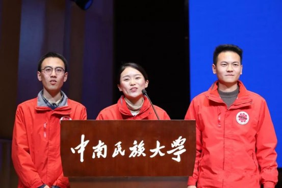 (杜雨潇与其他“格桑花”队员在中南民族大学报告会现场)