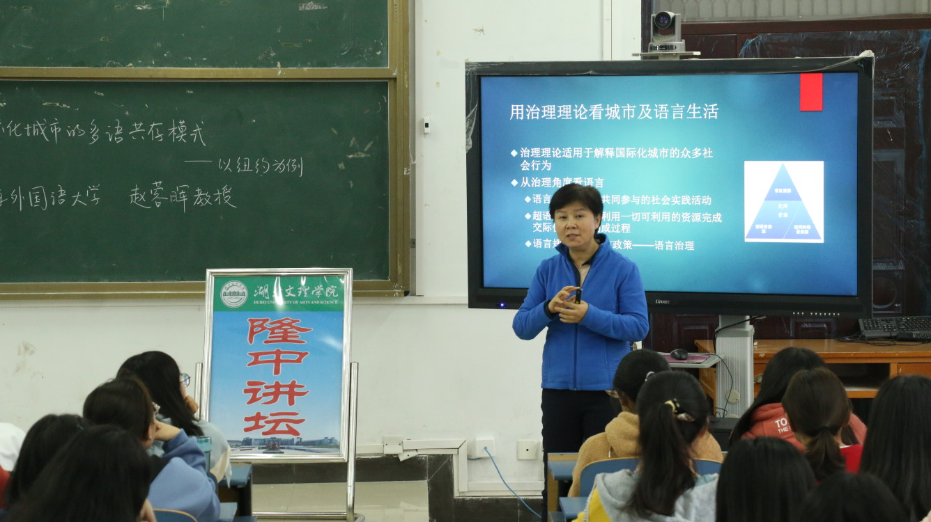 (国产精品久久久久久吹吹潮 通讯员 曾华宇) 10月18日下午,我校“楚天学者”特聘教授、上海外国语大学研究生院院长赵蓉晖教授应邀做客隆中讲坛,在N8-B407举办了“国际化城市的多语共存模式——以纽约上海为例”的学术讲座。文学与传媒学院院长刘群及部分老师出席会议,2019级汉语言文学专业学生、2020级部分新生参加活动,现场座无虚席。讲座由王丹荣老师主持。