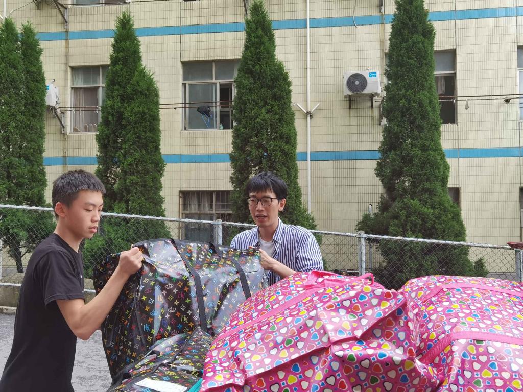 在热火朝天的搬迁现场中,出现了很多令人难忘的身影,有带头搬运行李的学生干部,有指导现场、搬运重物的学校教师。“志愿服务队”一大早就集中在18栋寝室楼下,开始了搬运工作。从一楼到四楼来回不间断的往返,志愿者们虽然手拿重物、汗流浃背,但是依旧没有停下脚步,坚持将换寝同学们的行李全部搬下。辅导员杨紫秋更是亲力亲为,一次次接过沉重的行李物品,参与到搬运工作之中,并且起到了极大的鼓舞作用。大家充满了干劲。
