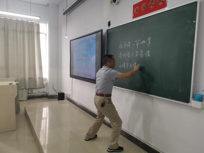 一手好的粉笔字是教师教学基本功的基本体现。文学与传媒学院为提高教师综合素养,促进教师专业成长,组织了这次粉笔字板书大赛。参加的人员中既有年过五旬的老教师,也有刚刚参加工作的年轻博士。为彰显文学与传媒学院的专业特色,老师们大都以传统经典诗文作为板书内容。比赛采取现场书写的方式,参赛老师各展所长,不仅用笔讲究,点划和谐,教授古代汉语的老师甚至采用全繁体字书写,展现了深厚的教学功底,得到现场观摩教师的交口称赞。经过两小时的紧张比赛,院教学督导现场打分,共有12名教师获得一二三等奖。