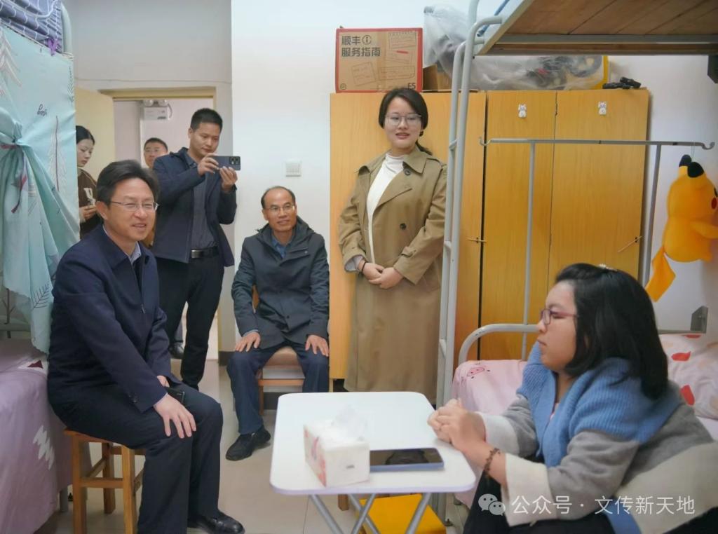 在北区学生公寓,张彦铎看望了林晓琴同学,详细询问她的实习和考研备考情况,希望她继续努力,为考研做好充分准备。