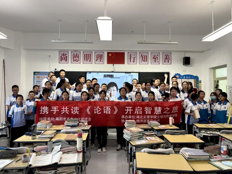(通讯员 陈杭 王艳玲 王梁桦) 跨越山河万里,共赴经典之约。5月12日下午,在襄阳市齐鲁文化促进会的指导下,由湖北文理学院文学与传媒学院承办、新疆精河县第四中学协办的《论语》共读系列活动以云端连线形式顺利举行。湖北文理学院文学与传媒学院张月萍老师通过线上课堂,为3500公里外的精河县第四中学七年级1班的学生们带来了一堂生动的《论语》经典金句分享课,以书香为纽带,架起鄂疆师生共读经典之桥。