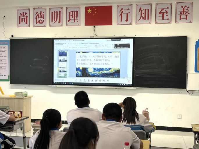 “新疆的同学们如何理解‘有朋自远方来’?”张老师通过提问互动,引导两地学生分享感悟。七年级1班的学生们踊跃发言:“湖北的老师虽远隔千里,但云端课堂让我们像家人般亲近!”屏幕内外掌声与笑声交织。当新疆精河县中学生们吟诵《论语》的琅琅书声与荆楚教师的谆谆讲解在云端交汇,优秀传统文化正以跨越时空的力量,滋养着民族团结进步的沃土。
