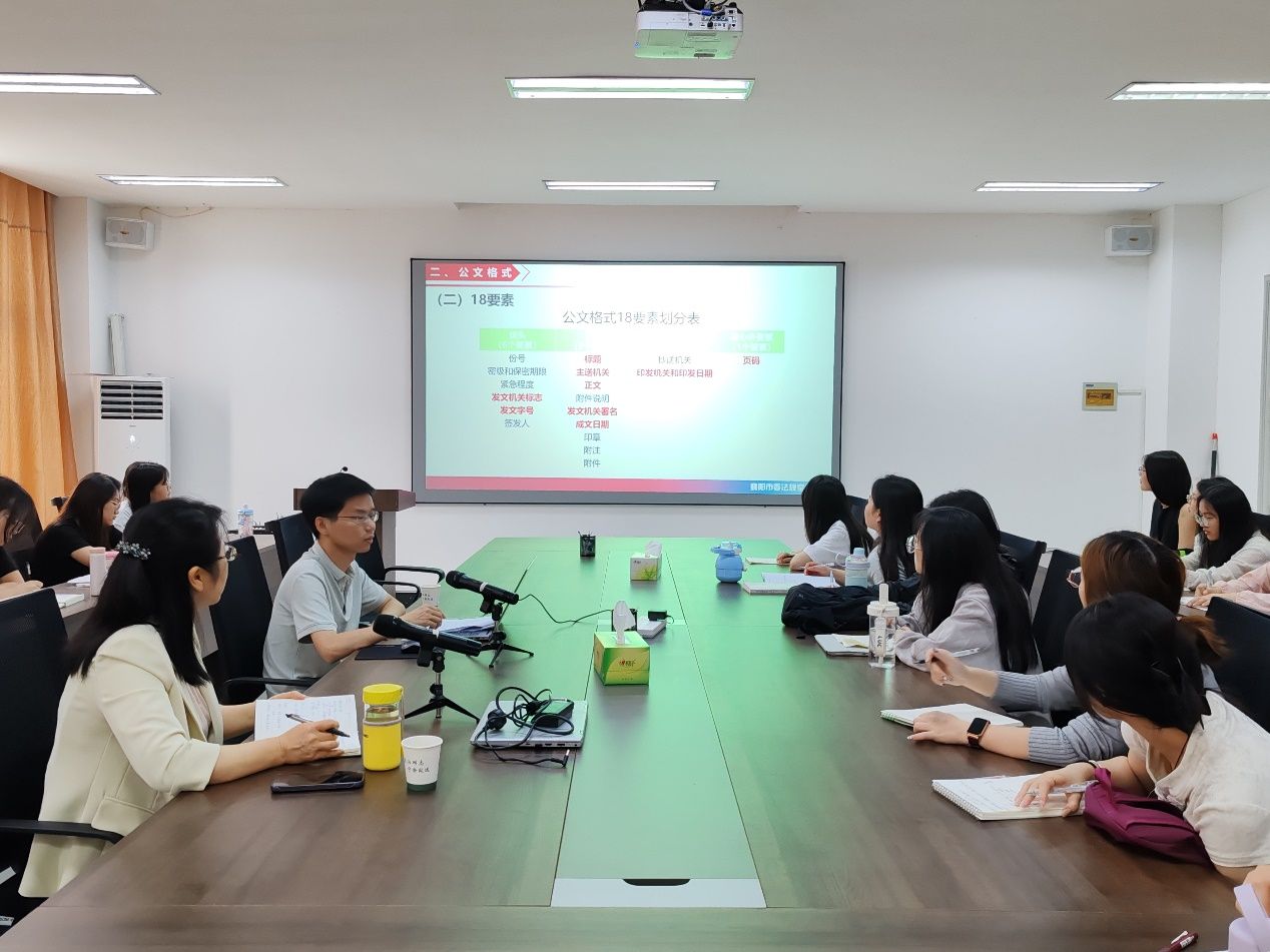 在分享环节,汪彬围绕公文种类、公文格式和公文内容三个部分展开。他详细介绍了通知、报告、请示、函等常用公文种类和相互间的区别,用具体案例阐释了每种公文的特点与用途。对于公文格式,汪彬细致讲解了层次结构、标题、落款等规范要求,强调严谨的格式是公文权威性的体现。在公文内容撰写方面,他指出讲政治是第一要求,守法律法规是底线,要观点明确、条理清晰、语言简洁准确,用精炼的文字传递丰富、准确的信息。