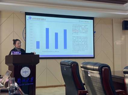 冯晓娜同学汇报的主题是“网络暴力主体低龄化现象分析”。网络暴力主体低龄化趋势逐年上升,已然成为突出的社会问题。通过案例总结青少年网络暴力行为发展模式,对网络暴力主体低龄化现象的内外诱因进行分析,从青少年家庭、学校、媒体、政府方面提出具体有效的应对措施。